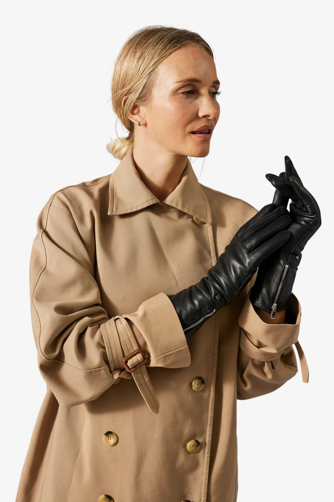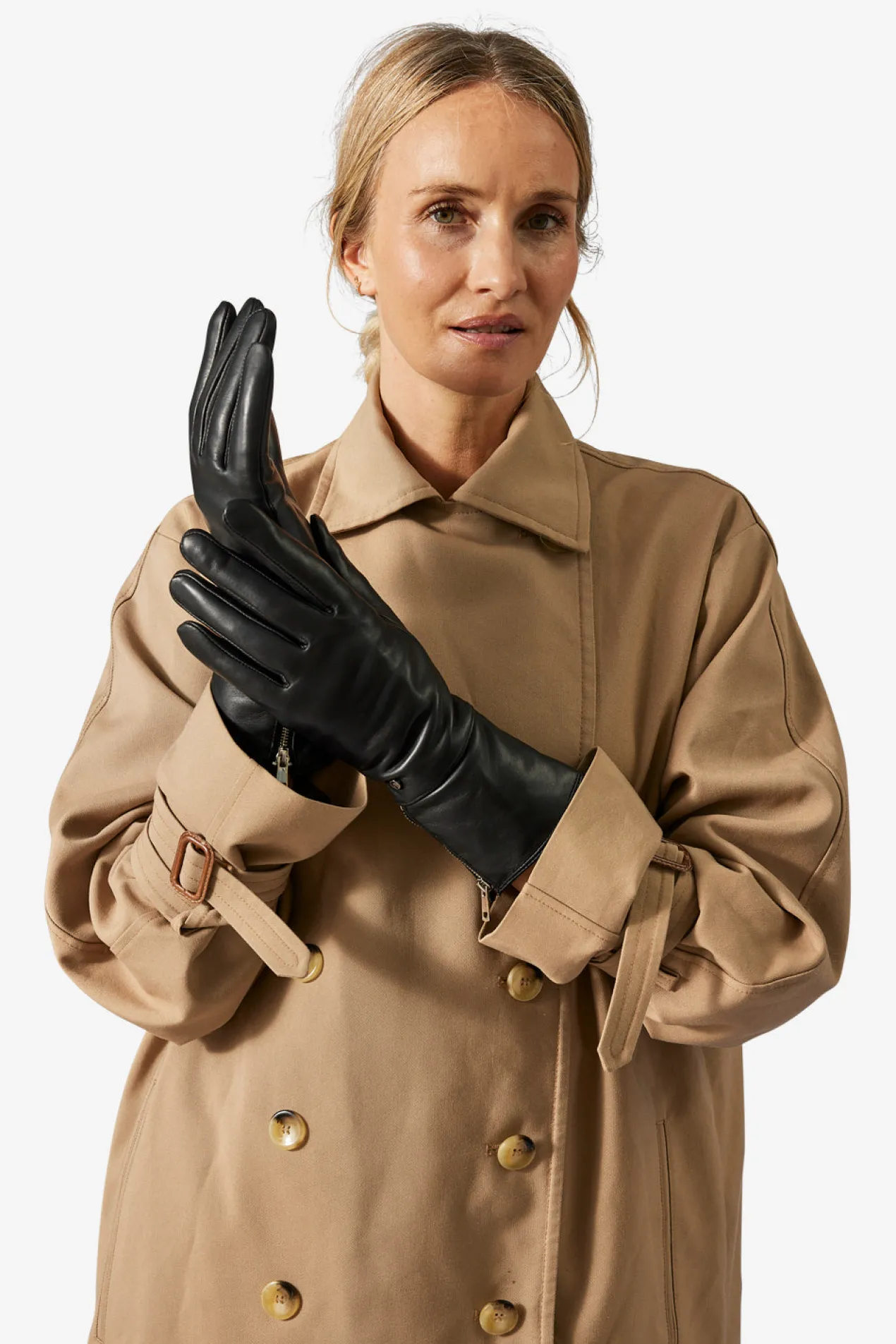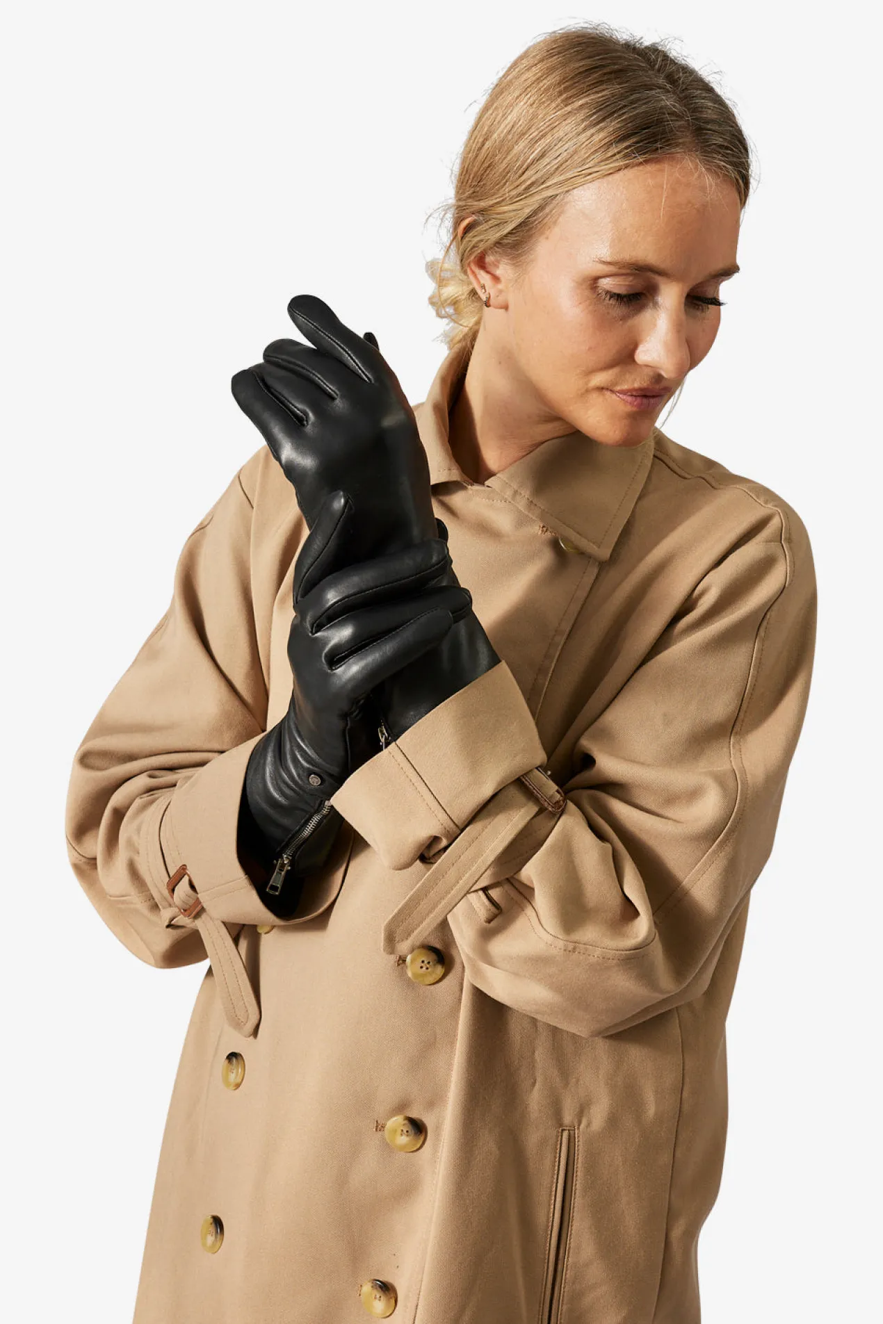 Safira gloves by Adax. Beautiful half-length glove in smooth leather. Warm lining in 85% wool and 15% cashmere. There is a touch function in the index and thumb on both the right and left gloves.