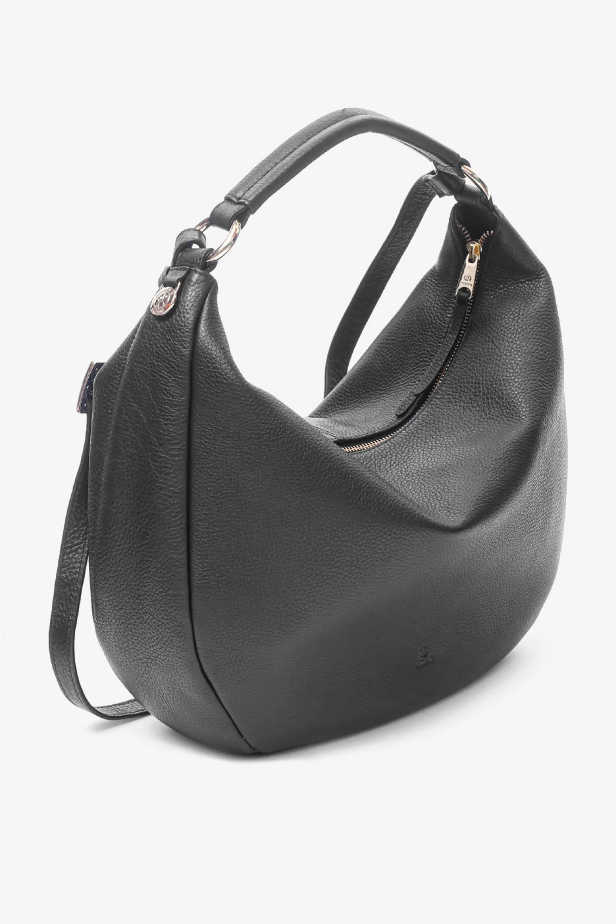 Ida is a very beautiful and trendy shoulder bag which is perfect for everyday errands and gives a nice sophisticated look to your outfit.With Ida, you get a nice bag that can contain all your most essential things you need during the day, such as cosmetics, phone, a small shirt, water bottle and still have plenty of room. A long strap is also included with this bag.The shoulder bag is hand-sewn in our high-quality cormorano calfskin, and can with the right treatment last for many years.The bag has a gold zipper and gold details.Shoulderstrap: 58-103 cm