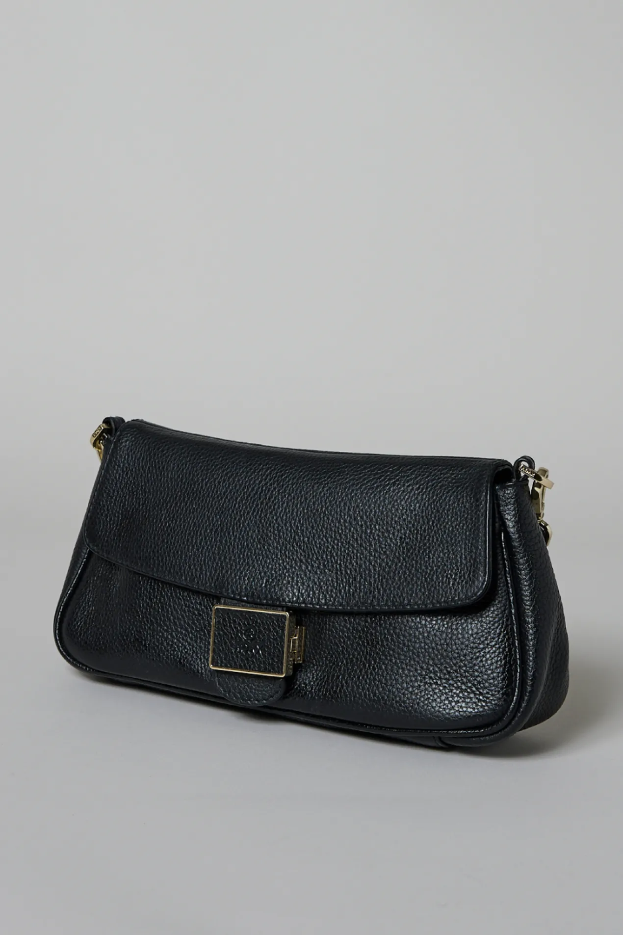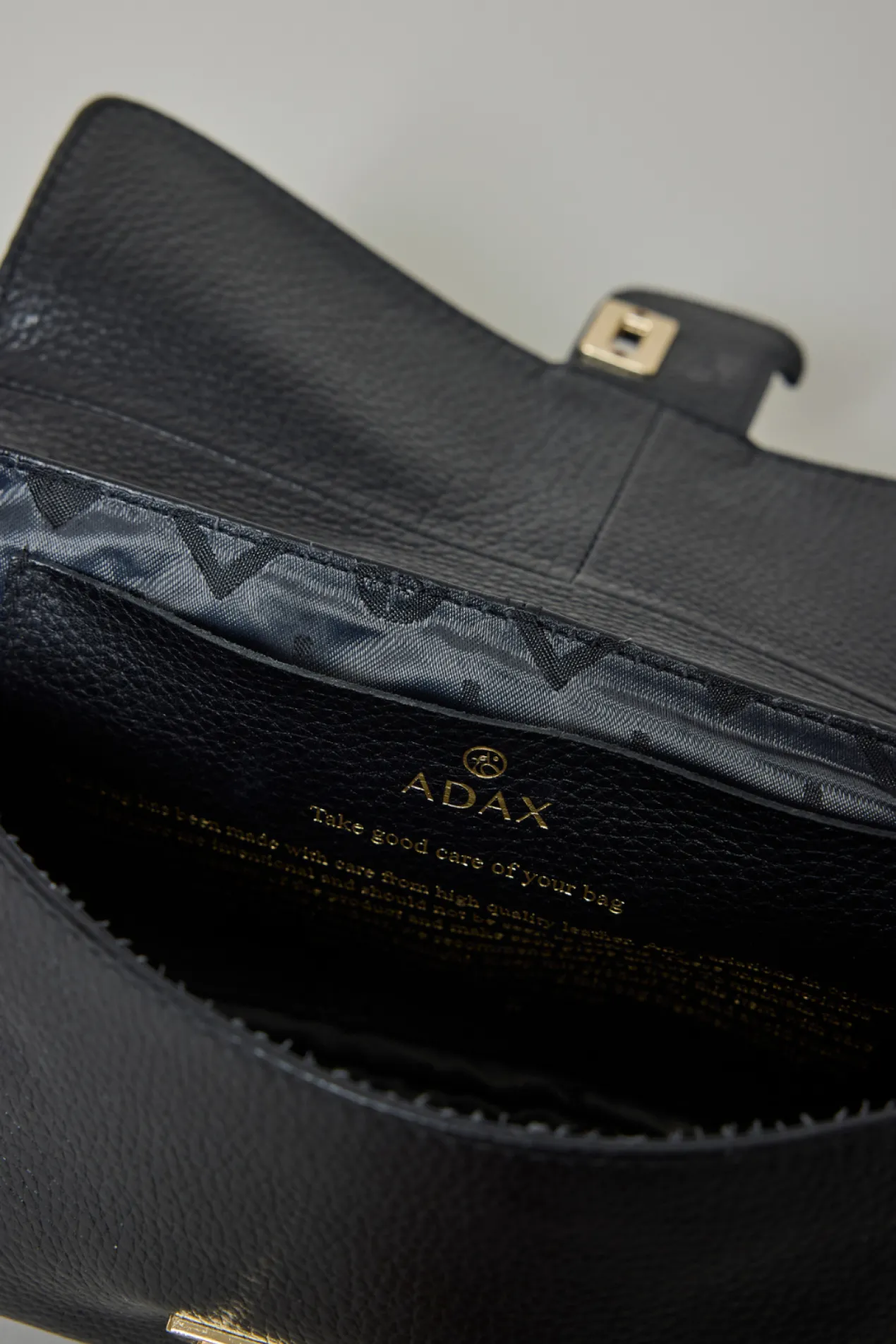 This black handbag is a secondhand style from our Reuseme concept. The bag is considered to be in good condition, though it may show signs of wear and use.The bag has:• 1 compartment• A small inner zip pocket and a slip pocket• A short, detachable strap• A magnetic closure