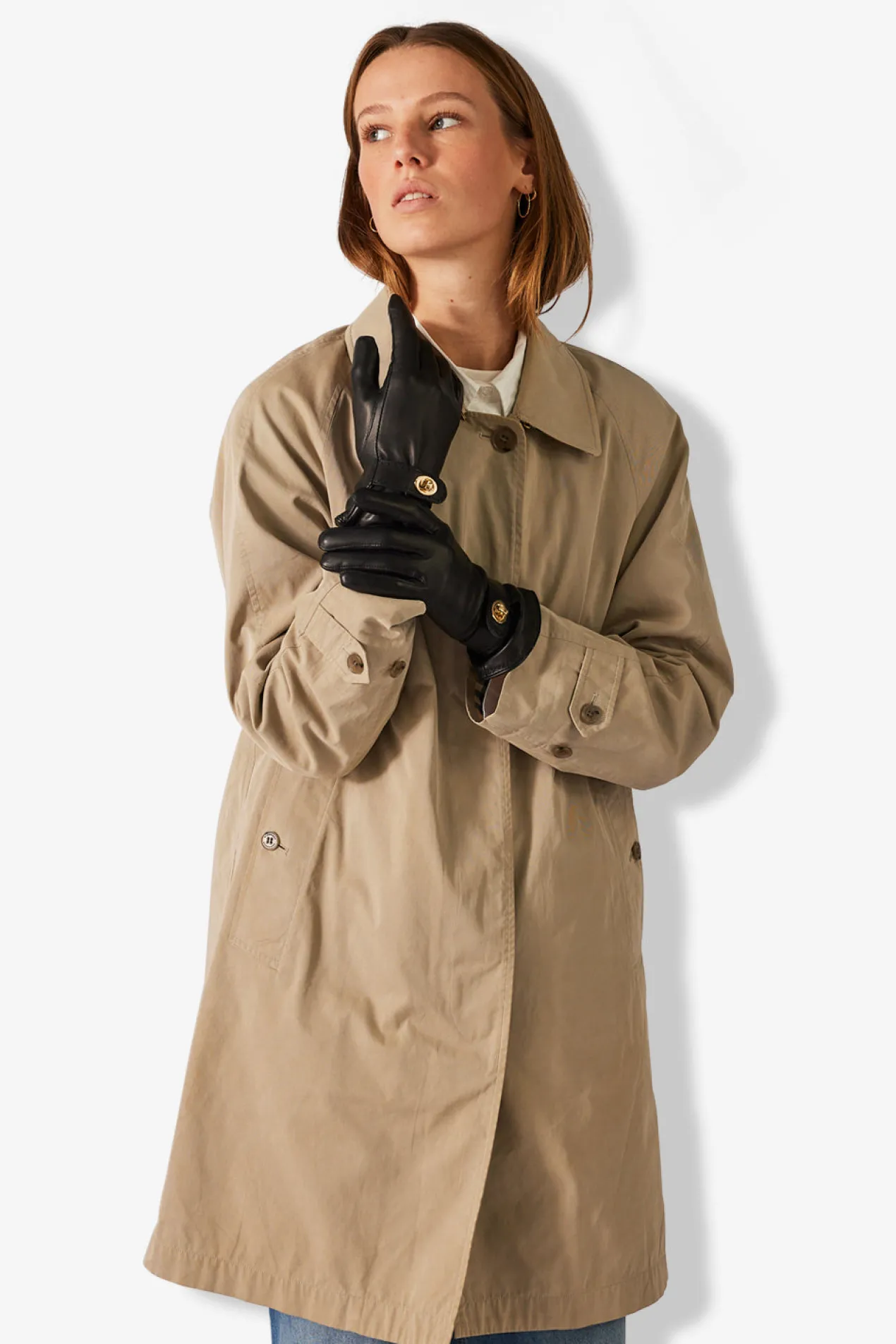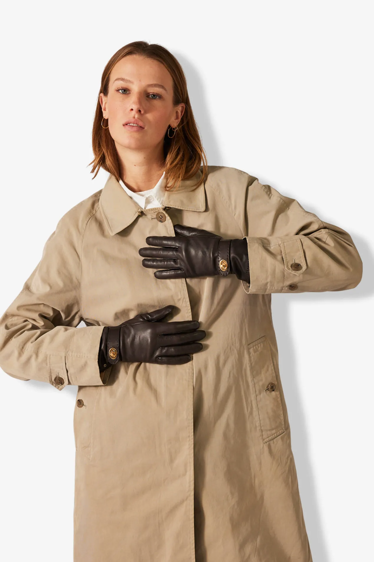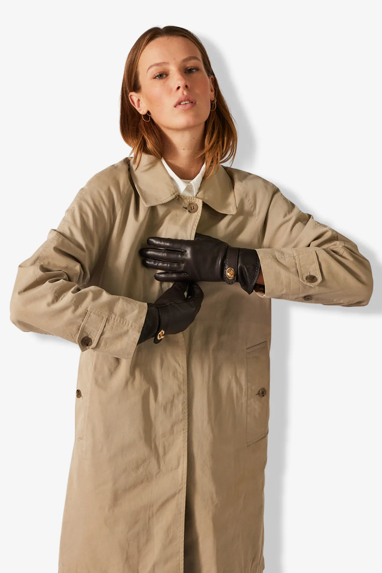 Adax gloves Kaia. Nice colored gloves with lock detail at the wrist. Warm lining in 85% wool and 15% cashmere. There is a touch function in the index finger and thumb on both the right and left gloves.