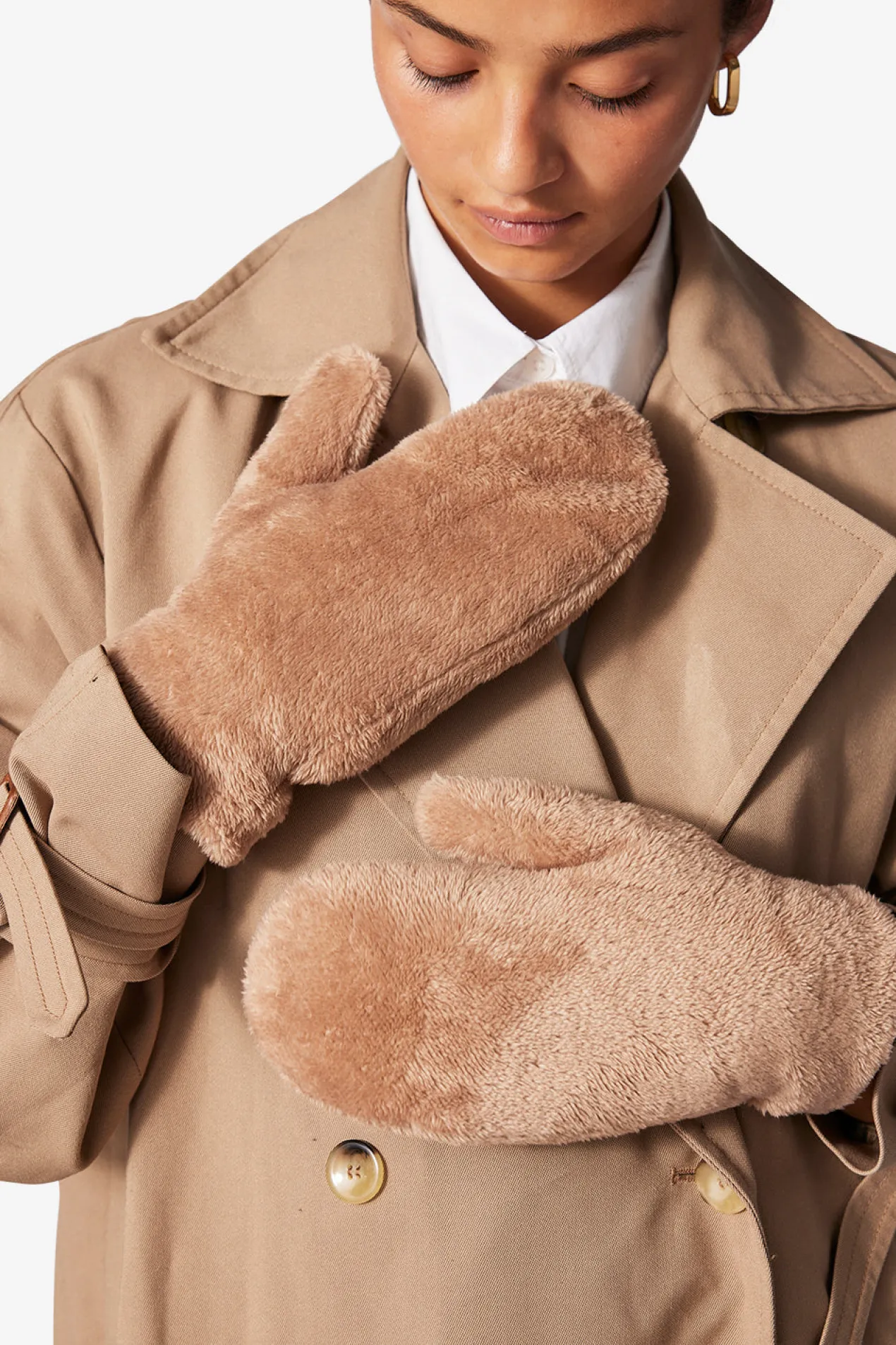 The Adax mitten Paige is made of 100% polyester, the mitten is reversible, and in the softest “teddy fur”