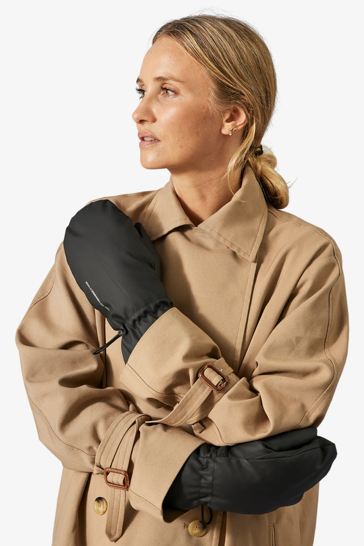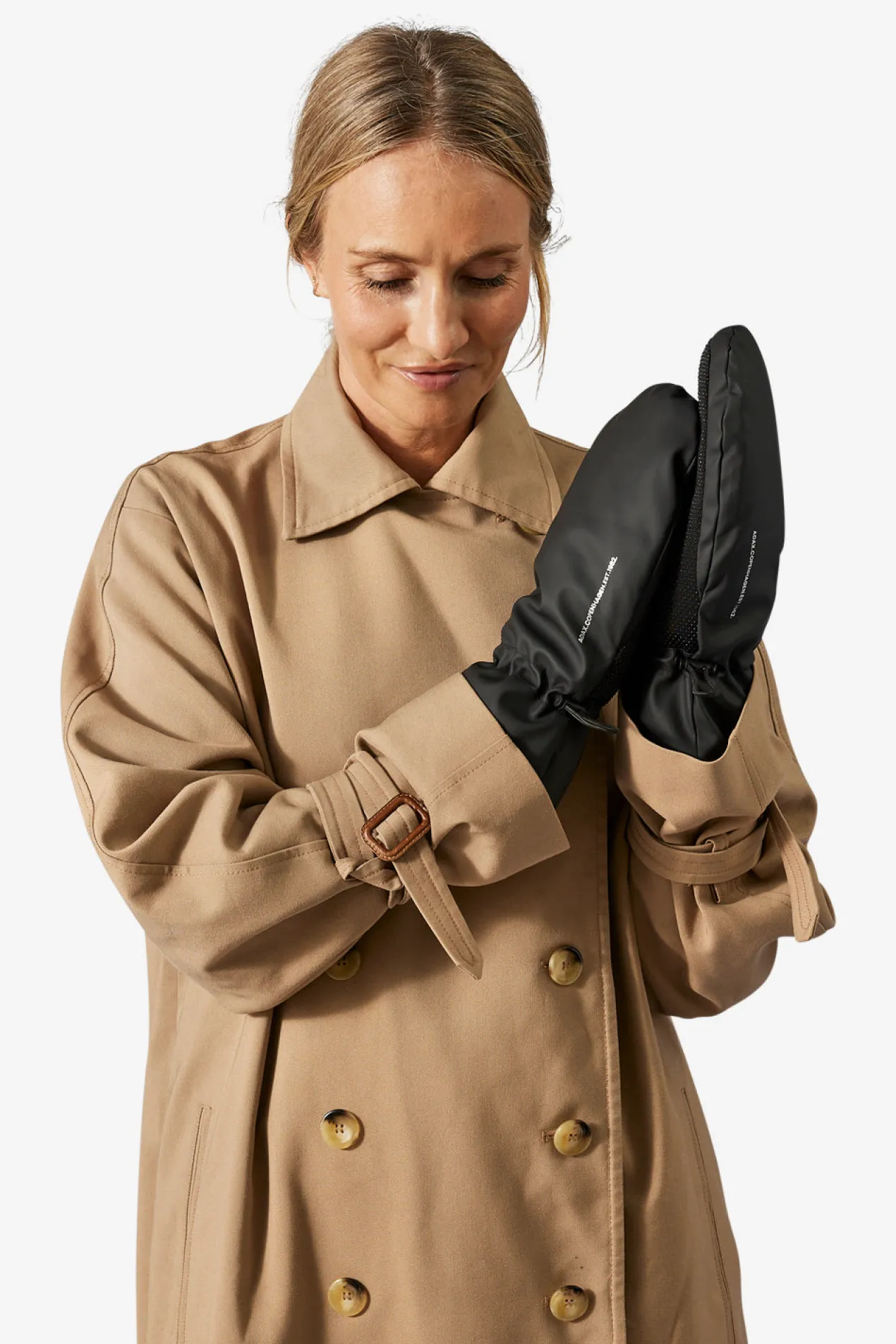Super cool mitten in water resistant material. Cool and practical with elastic to tighten it around the wrist. Extra durable material inside the palm.