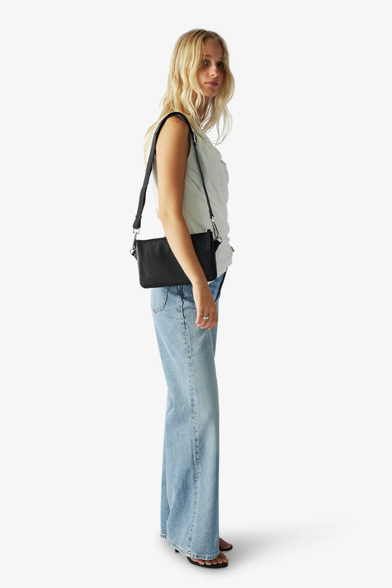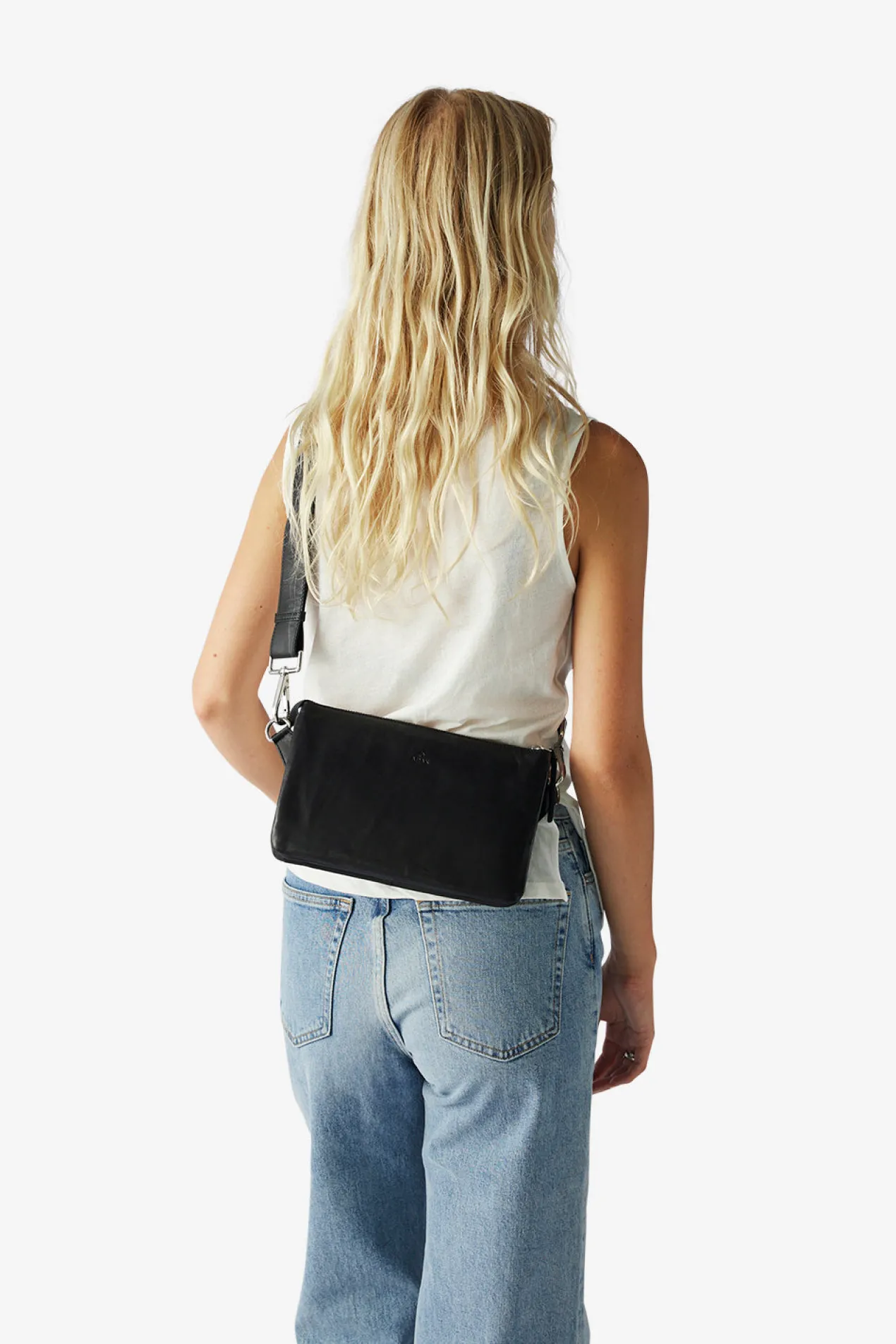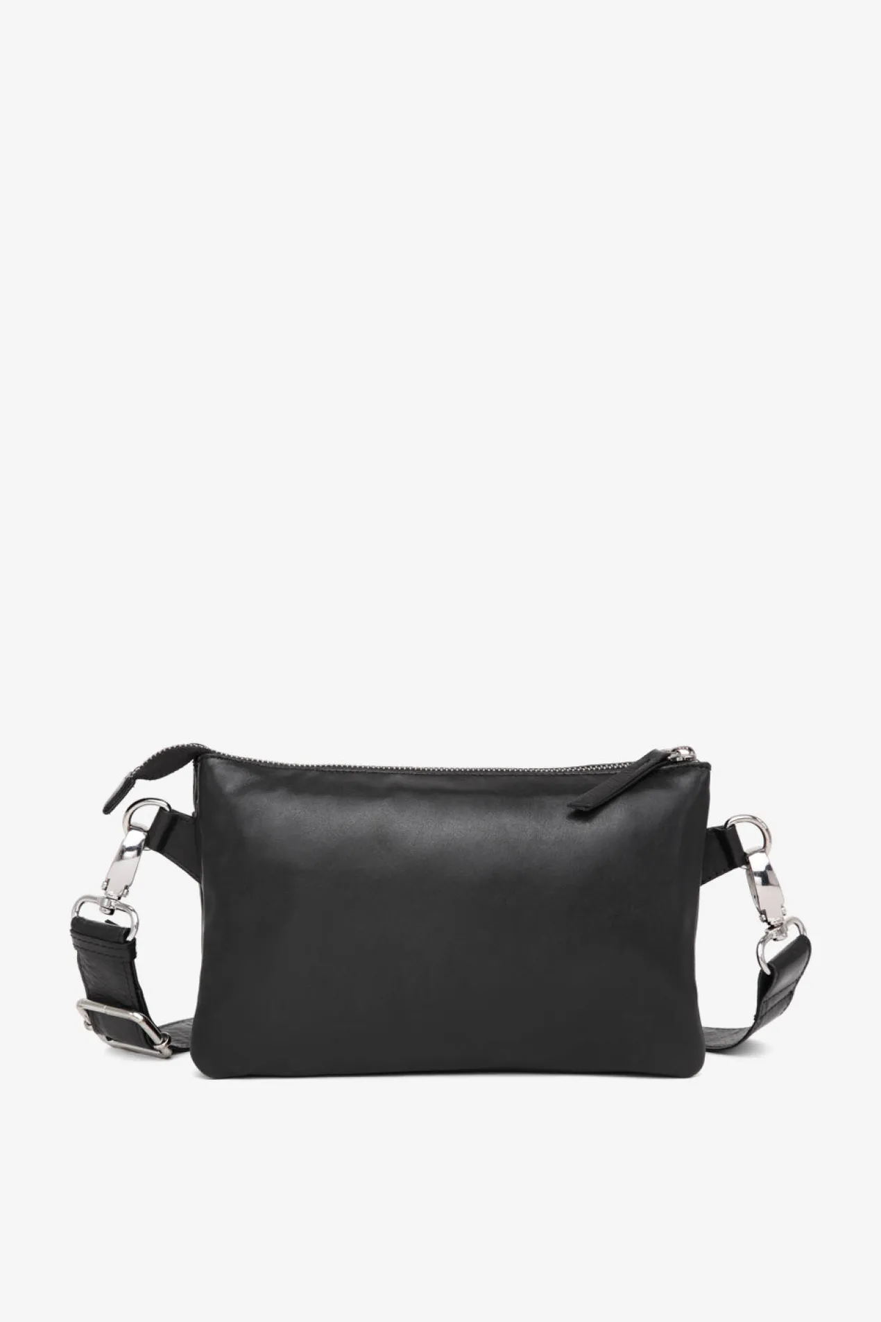 Stylish Molly bag with multiple functions. The bag can be used crossbody with a shoulder strap and as a clutch as the shoulder strap is detachable. The size of the bag is perfect whether it is used one way or the other.The main compartment of the bag is divided into three smaller compartments. The compartment in the middle closes with a zipper to keep your important things safe.The two other compartments are open – there is a small zip pocket in one of the compartments and a small open leather pocket in the other compartment.The bag closes with a zipper. On the back of the bag, there is a flat compartment, which closes with a push button, for the things that need to be easily accessible for you.