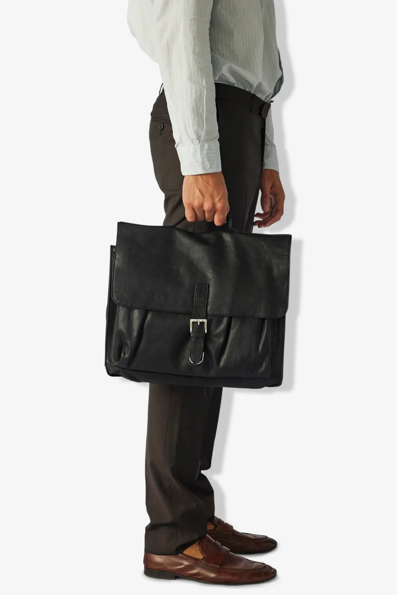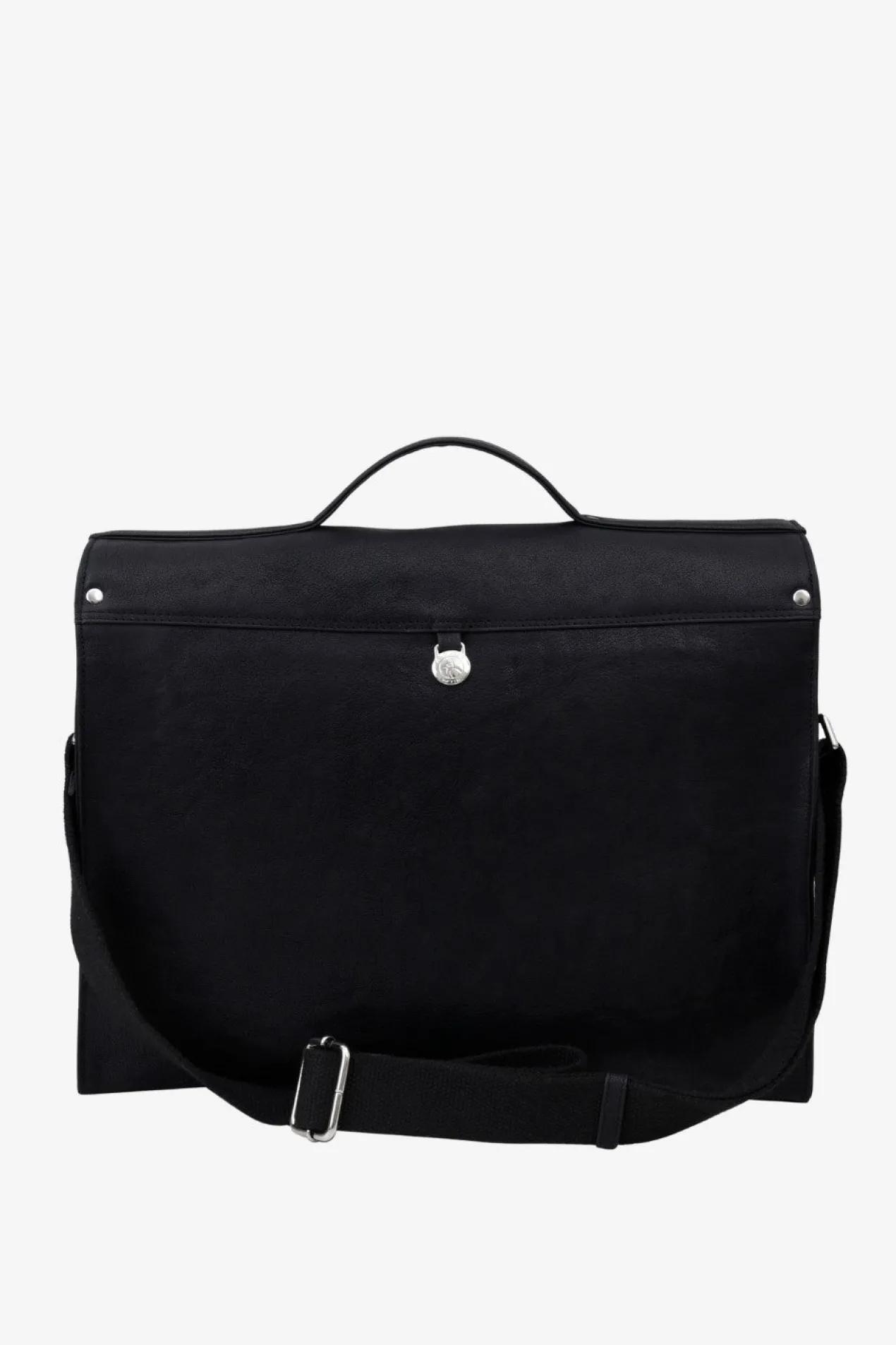 Jarl working bag in Catania leather. Inside there are 2 large compartments, in one compartment there is a small zipped pocket as well as an open pocket and a key lanyard! The pockets are super practical for the small things you need to find quickly. The bag easily holds a 13″ laptop! The bag closes with a flap and a buckle and has a long adjustable canvas strap. The bag is not lined.