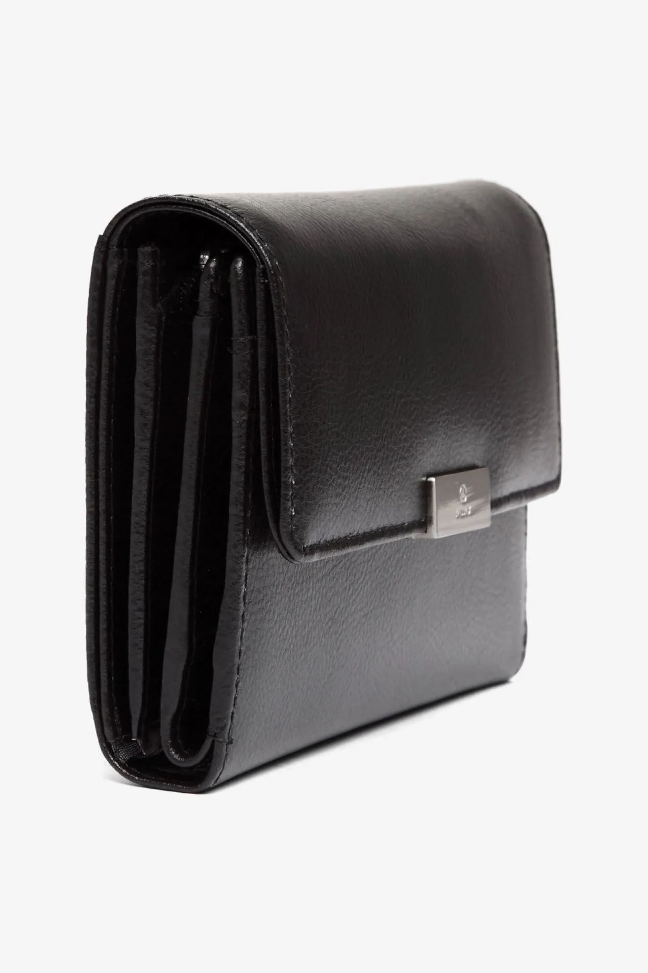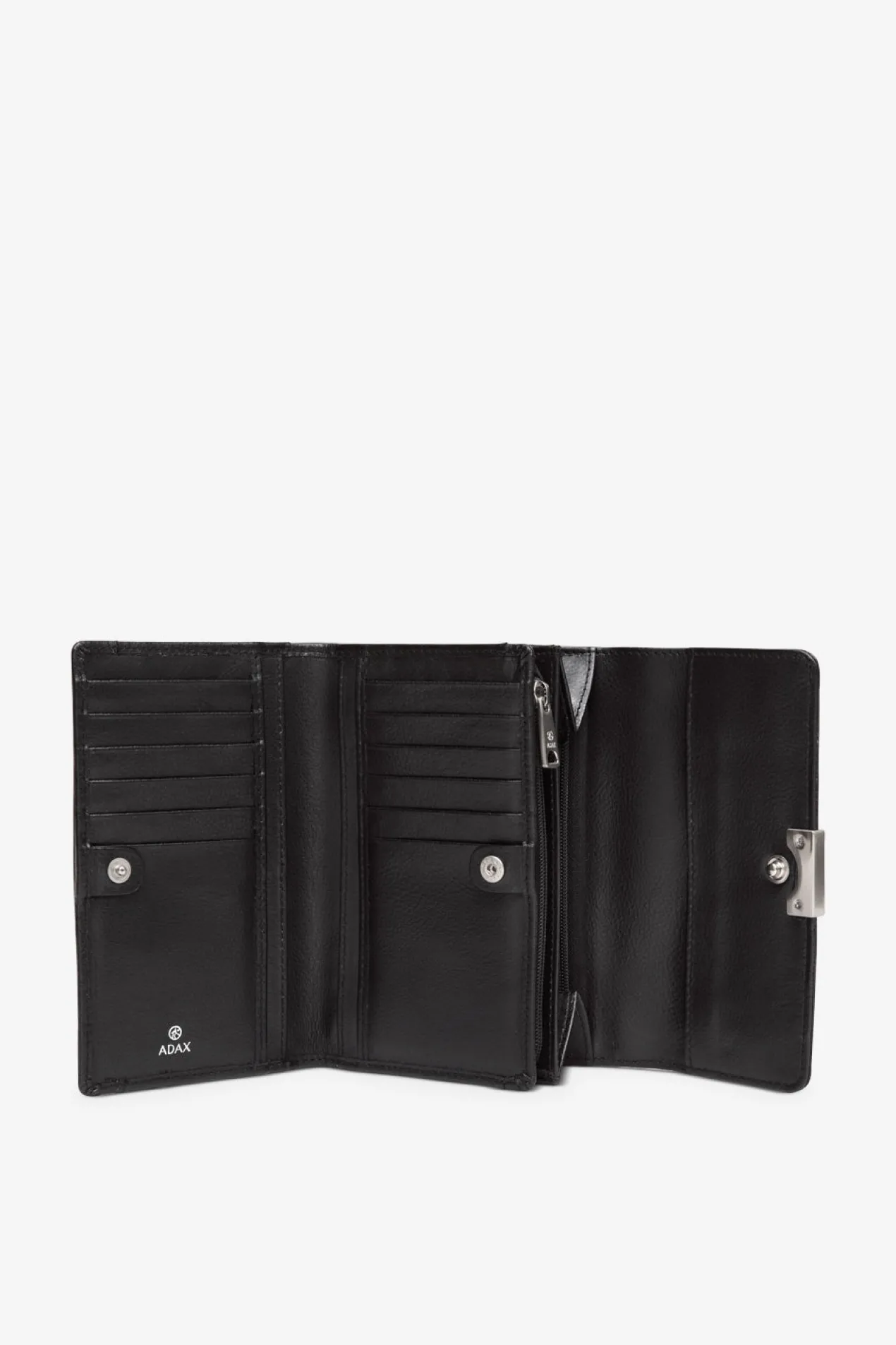 Inga is a large wallet, and will be perfect if you need lots of space for several cards, cash etc.On the back of the wallet is an open pocket, and the actual wallet has a push button closure on the front, which also has a thin pocket. Inside, there is a room with a small zipper pocket and two thin pockets, and a bigger zipper pocket with two rooms. Further, the wallet contains of 12 cardholders and four small pocketsThis wallet is protected against RFID reading, which makes it impossible to read your payment card details without your knowledge and accept. This will protect you against possible misuse and theft.