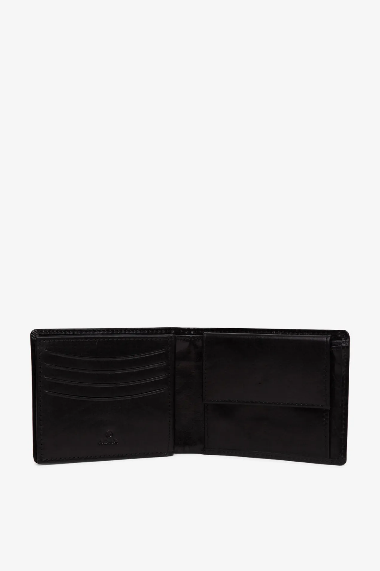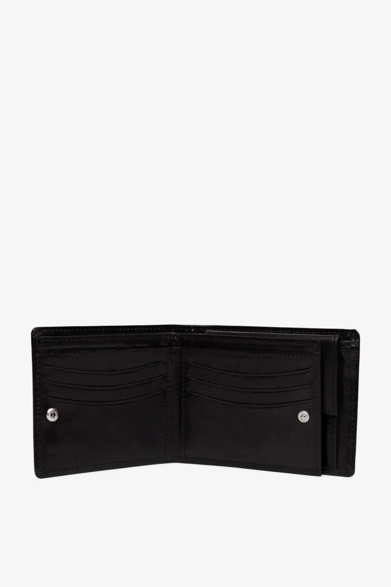 This classic and stylish wallet is one of our most popular items for men. The leather is smooth with a bit of shine to it.It has three interior compartments for banknotes, a small coin pocket, and 10 card slots.This wallet has RFID protection