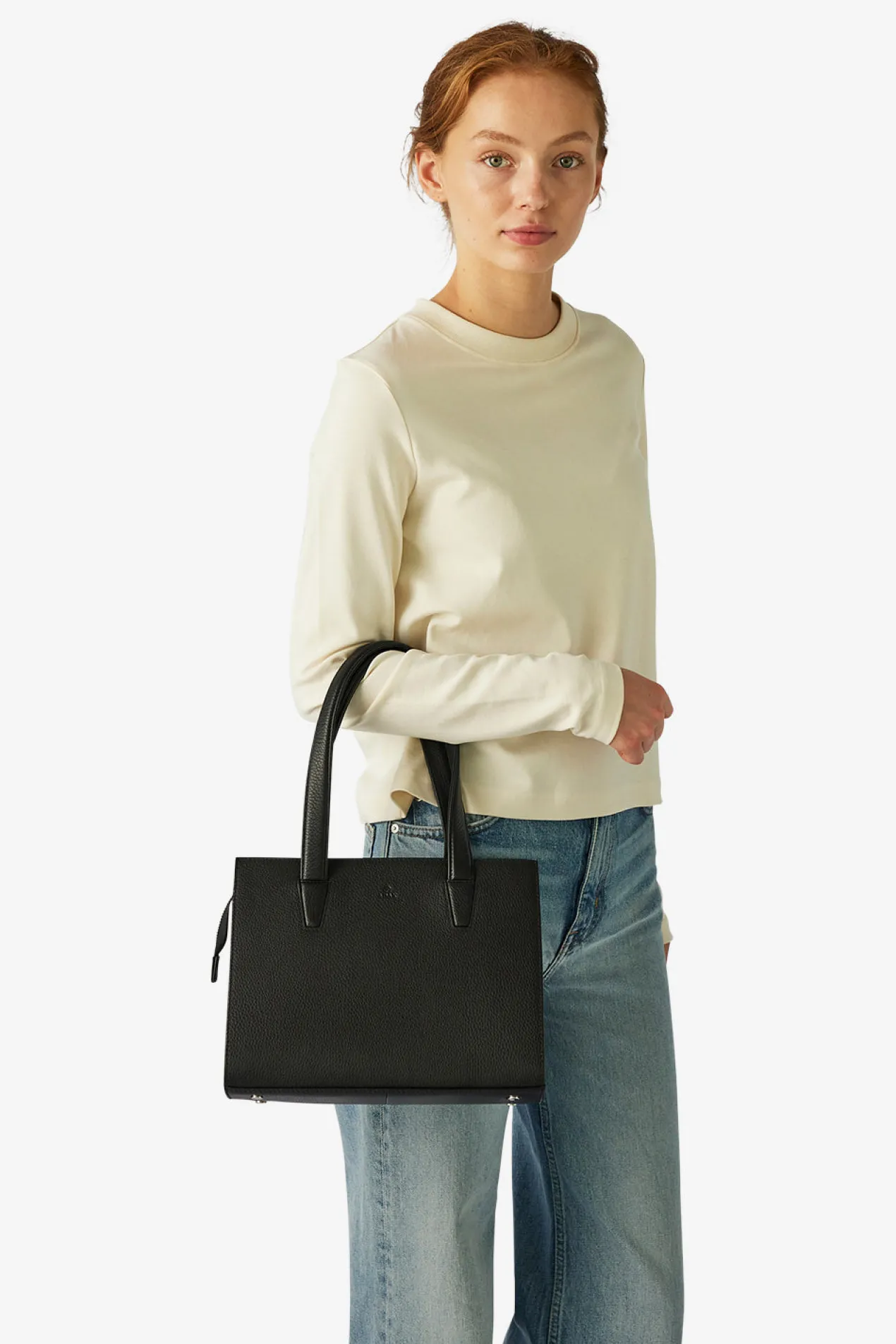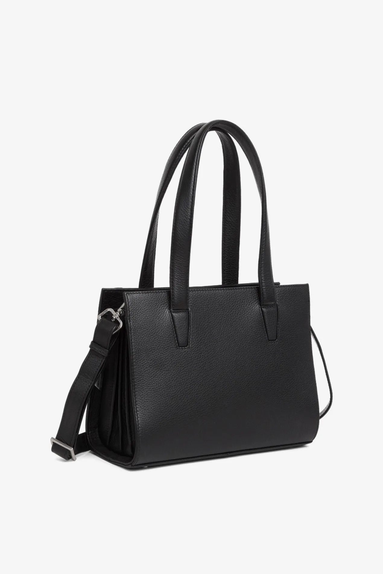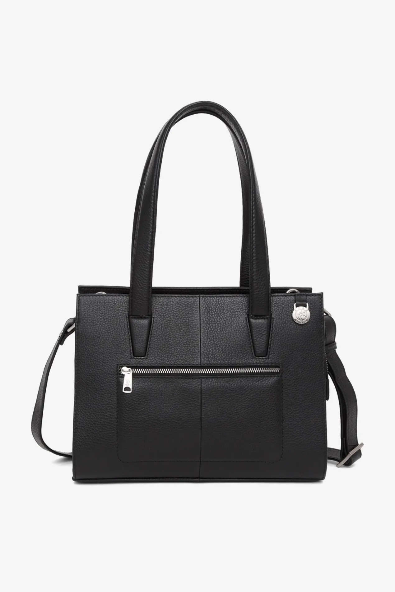 Elea is the little sister to the larger Aline handbag and is really great for everyday use. The design is simple and stylish and then it may be carried in the two handles or in the detachable shoulder strap.The bag has a zipper closure and consists of three great rooms separated with two thin zipper pockets. In the back room, there is a small zipper pocket with an open leather pocket, for a smartphone. On the back of the bag is another fine and discreet zipper pocket.This Adax handbag is perfect for everyday life and may be used for what you like.