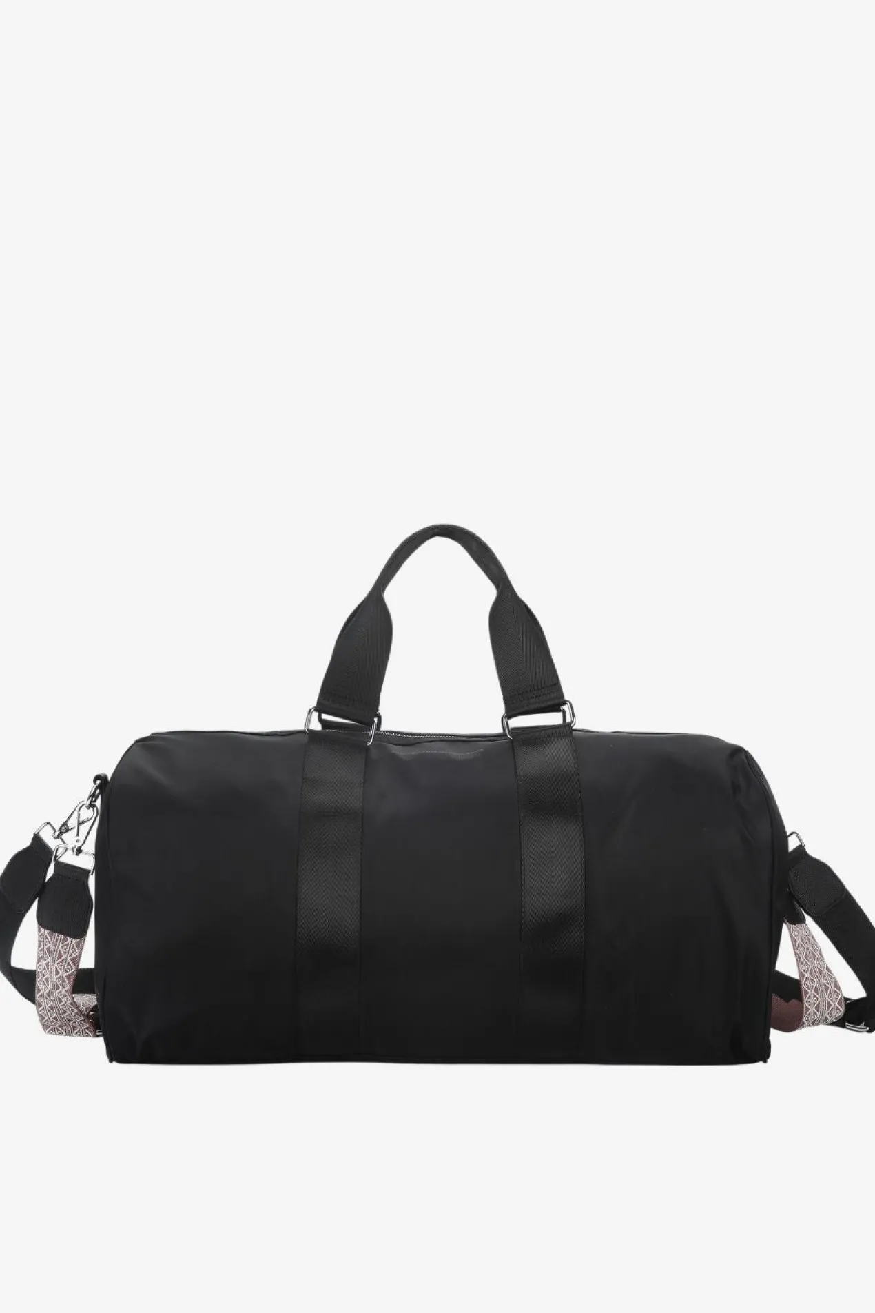 Anea is a large and spacious weekend bag with a classic, simple and sporty design. You can use the bag both as a training bag and a weekend bag.The bag is opened with a zipper. The bag consists of a large room with space for a towel, clothes, extra shoes and a toilet bag – perfect for a weekend trip! Inside is a large zipper pocket and two large side pockets in the lining, which are ideal for storing small items.The bottom is stiff which makes it easy to get an overview of your things. Anea has carrying handles and with the bag you get two straps – a black nylon strap and a strap in beige and light blue with gold details.